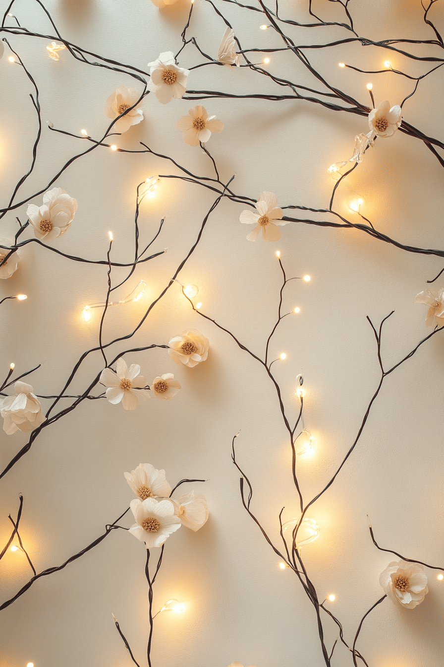 - Hänge leichte Dekoelemente wie Papierblüten oder Lichterketten an die Zweige.
